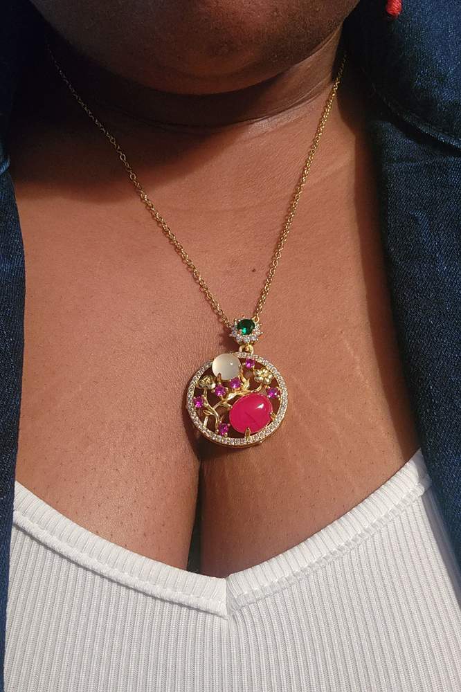 My cherry blossom necklace that I've had for about 2 years now. None of my jewelry from them has tarnished and they're beautiful. It's no longer in stock but they have more beautiful collections on their site
