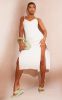 White Rib Cup Detail Cut Out Midaxi Dress