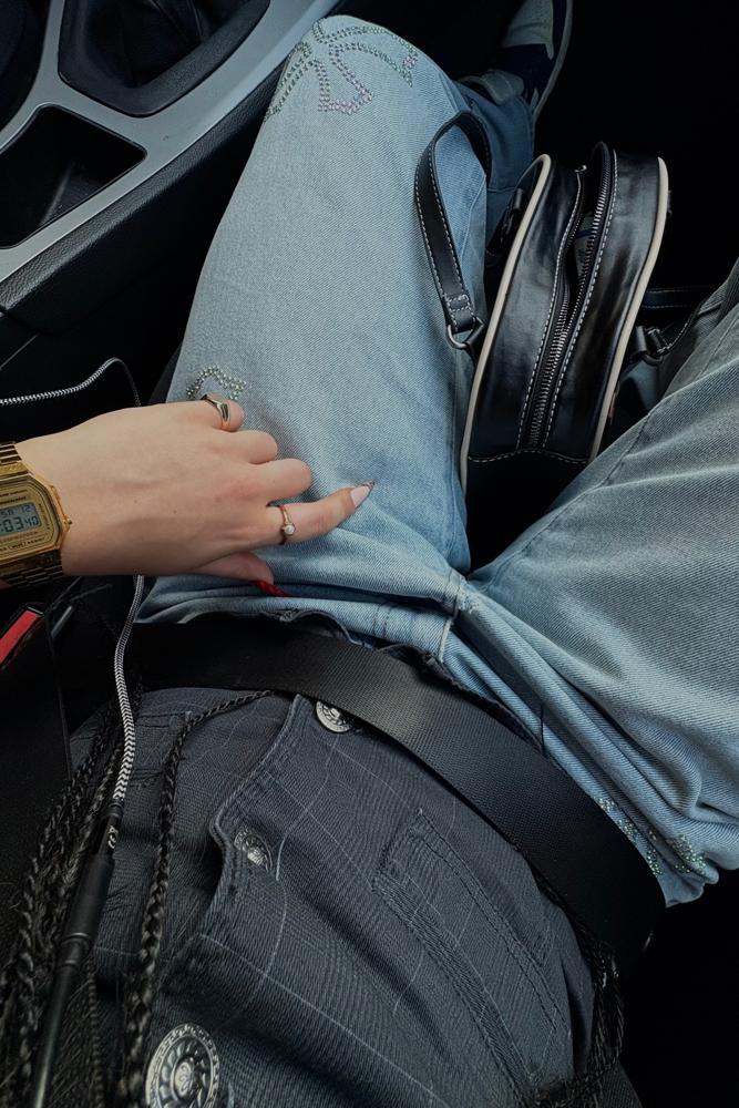 Suede leather. I choose it because of colour paired with golden square buckle.