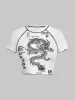 Grunge Punk Women's Dragon Pattern Mesh Raglan Sleeve Tee With Contrast Shoulder Stitching, Slim Fit, School