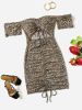 Grunge Punk Y2K Style Ruched Waist Leopard Print Halter Neck Crop Top & Super Low Waist Leopard Print Flare Pants 2pcs Set For Women