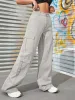 ROMWE Avant Y2K Streetwear Camouflage Rhinestone Cross Embellished Loose Waist Low-Rise Women Sweatpants