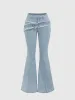 Grunge Punk Y2K Retro Heart Metal Buckle Fringe Waist Belt & Flared Jeans For Women, School,Ladies Casual Button,Cut Out,Zipper Drop Waist Flare Leg Long Blue Bootcut Skinny Women Jeans,Spring/Fall,Casual Daily Wear