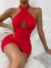Crisscross Front Peekaboo Open Back Bodycon Halter Dress For New Year Clothes