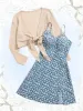 Kawaii 2pcs/Set Women Ditsy Floral Mini Dress With Short Jacket