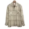 Open collar shirt in natural and navy checked linen