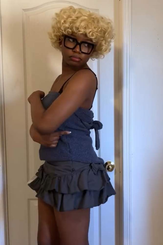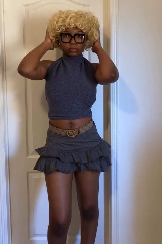 Thrifted this Spencer’s mini skirt at baby’s basement— the store it closed down but I think they still sell online. It’s super adjustable, there are holes in the back to attach string so you can tie to your linking!