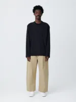 Such a dope pair of pants in a peached cotton twill, I get numerous compliments on them. Balloon leg, with a slight crop (sits right at ankles). Only negative is the color does gade very fast.
