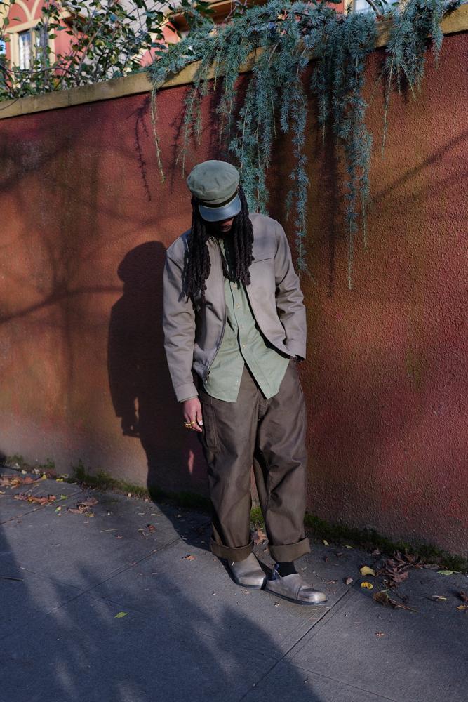 Studio Nicholson rarely missing on the clothing side of these. This single is timeless and the fabric is gold. The color reminds me of a greenish gray clay.