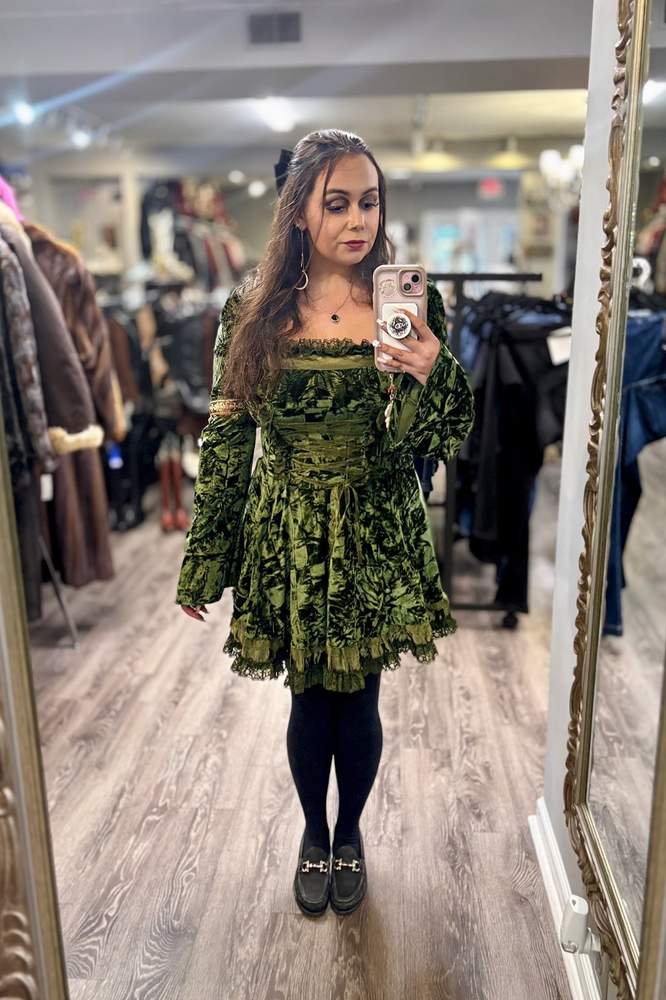 A vibrant satin skirt that flows gracefully, adding elegance and a touch of festive charm to the outfit.