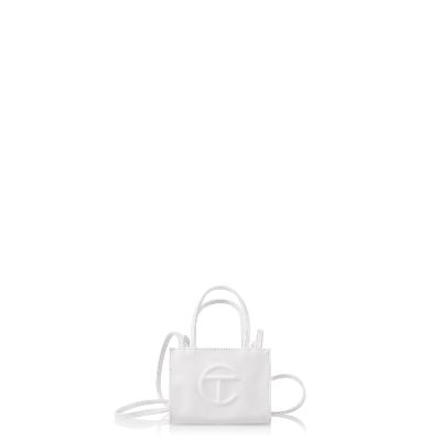 small shopping bag by black owned business Telfar. i usually put some cash in, lipglosses and my iPhone (for space reference).