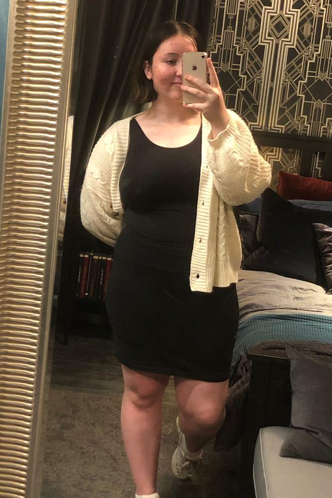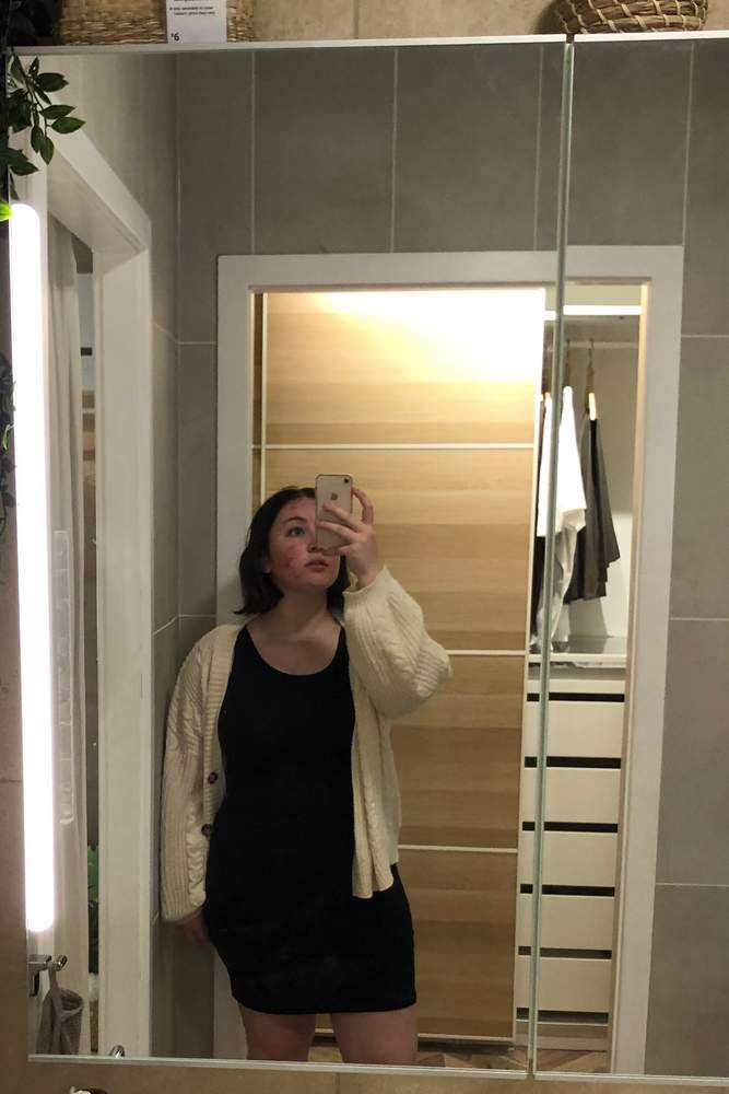 It is a beautiful skirt. Looks like leather but it’s all vegan. The material underneath feels slightly uncomfortable so I like to wear bike shorts underneath.