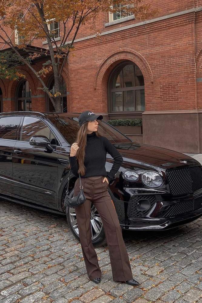 Venderby's designs my favorite pairs of trousers! Such flattering designs that are suited for all body types. I also love their color range. This is a beautiful pair of chocolate wide leg trousers. I would size down if you want a tighter fit.