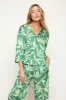 Aurora 3/4 Sleeve Palm Print Collared Satin Button Down