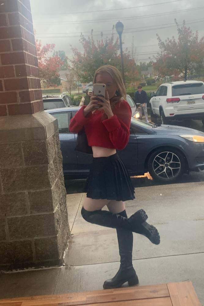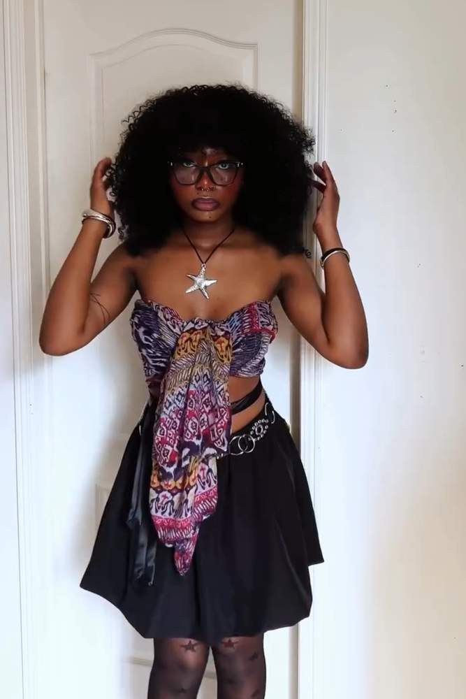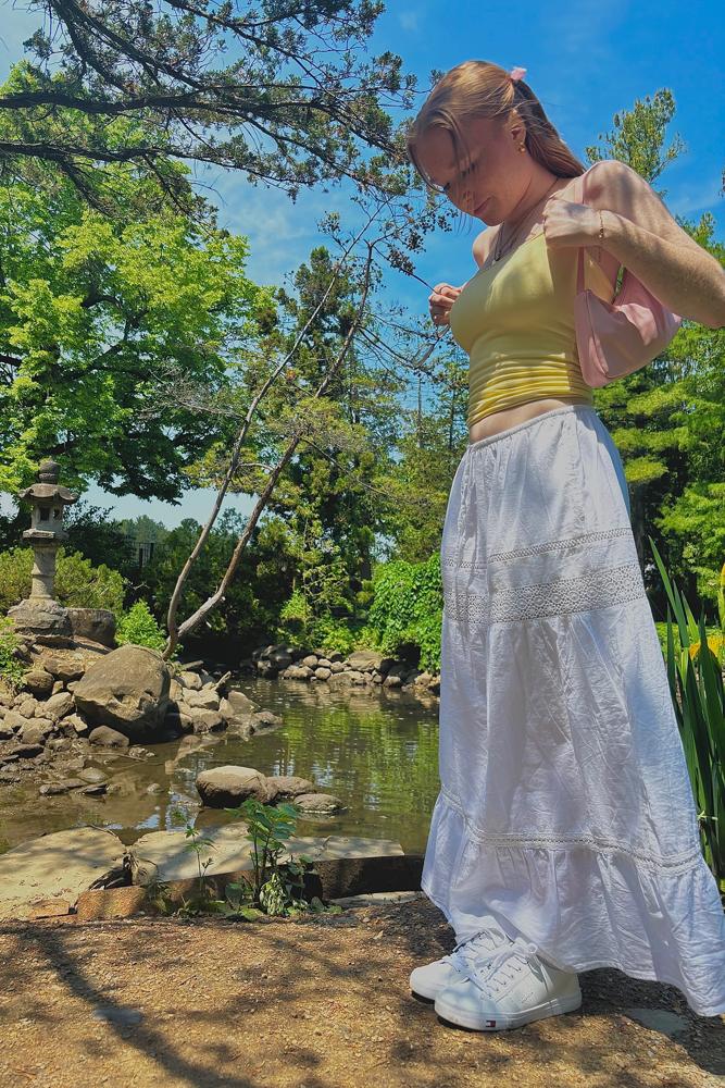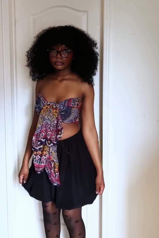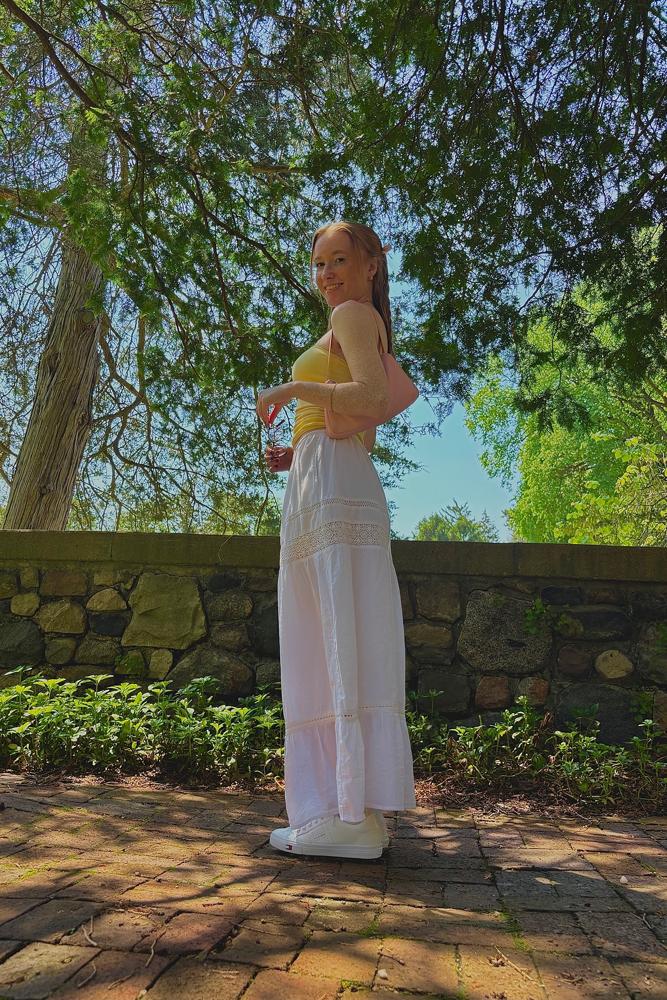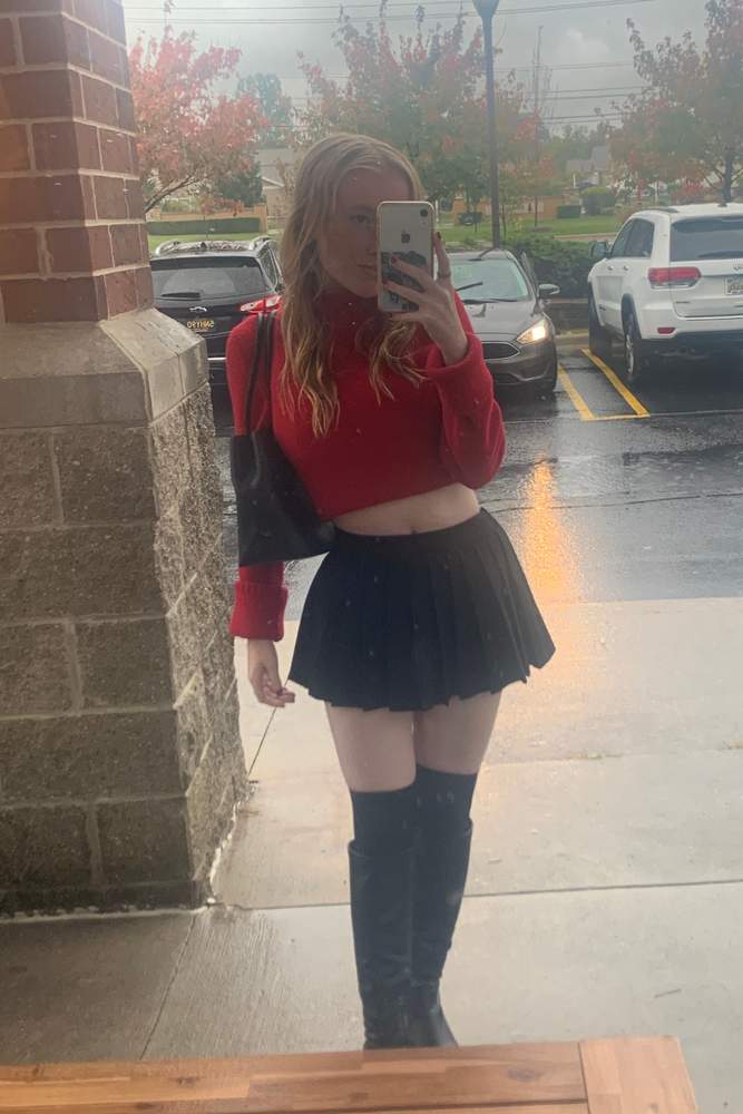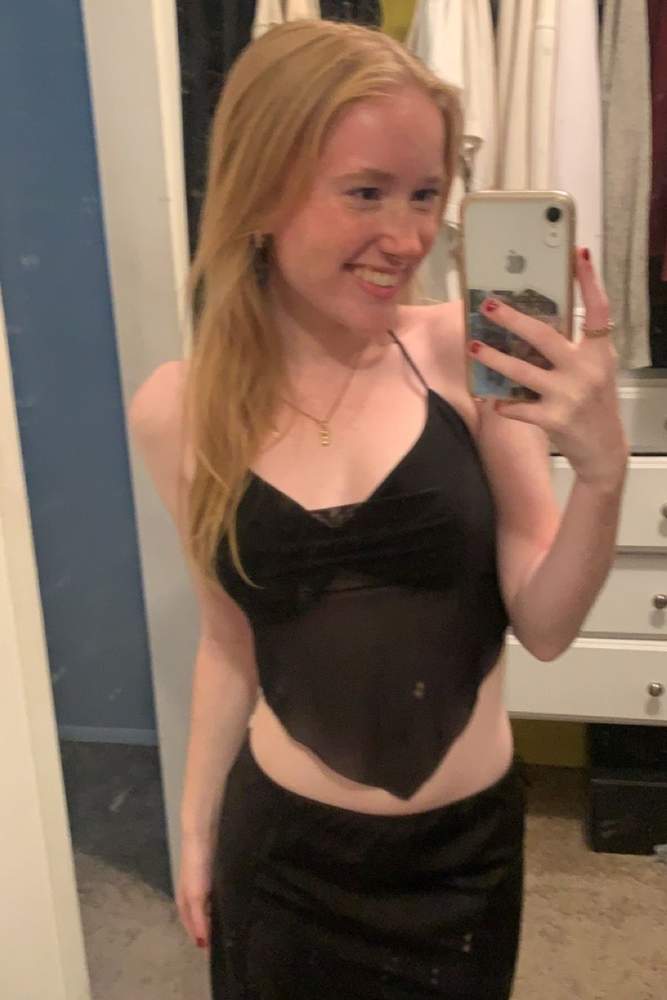 I sized up for the skirt (L) for a longer fit and pinned it to fit :)