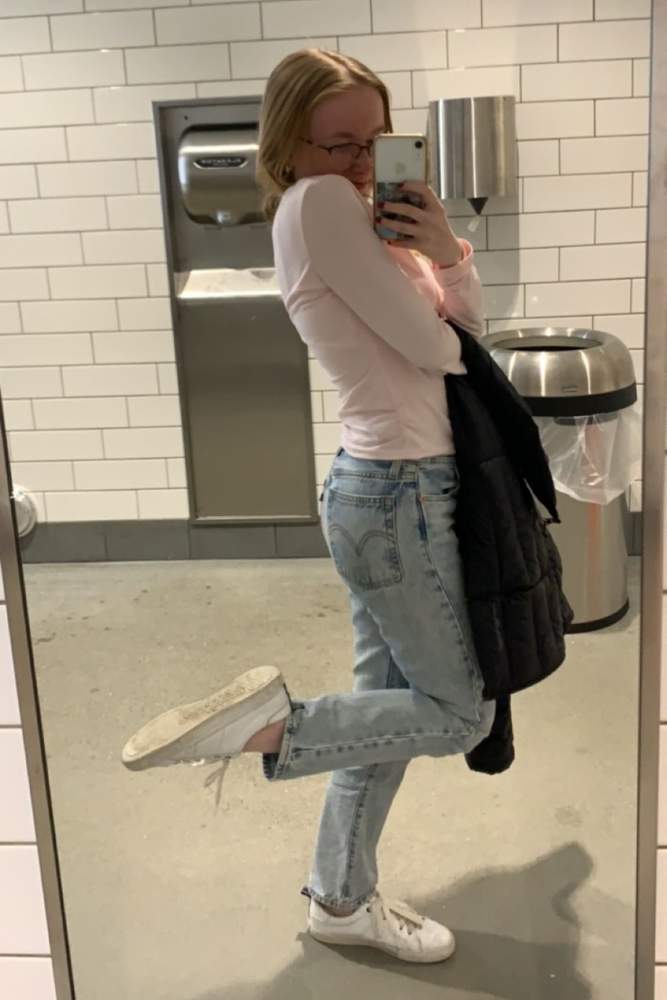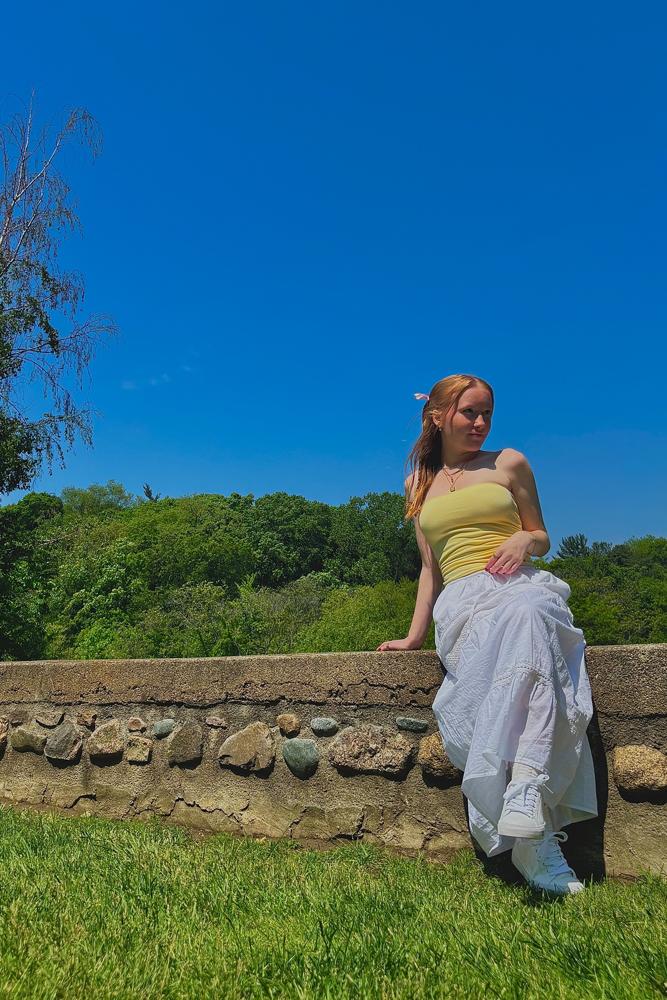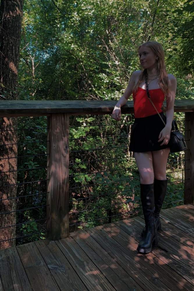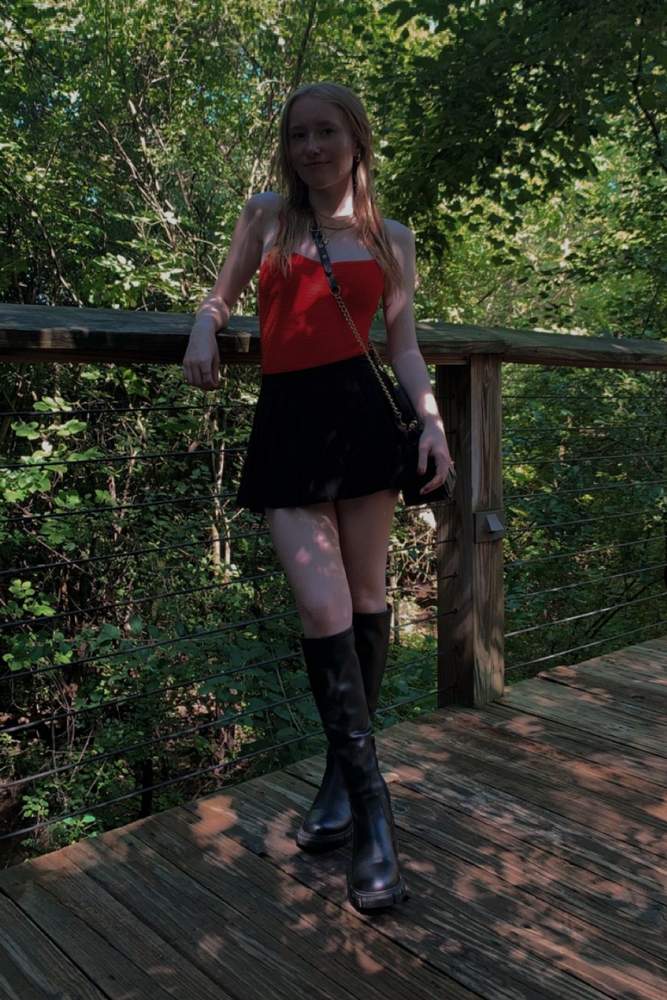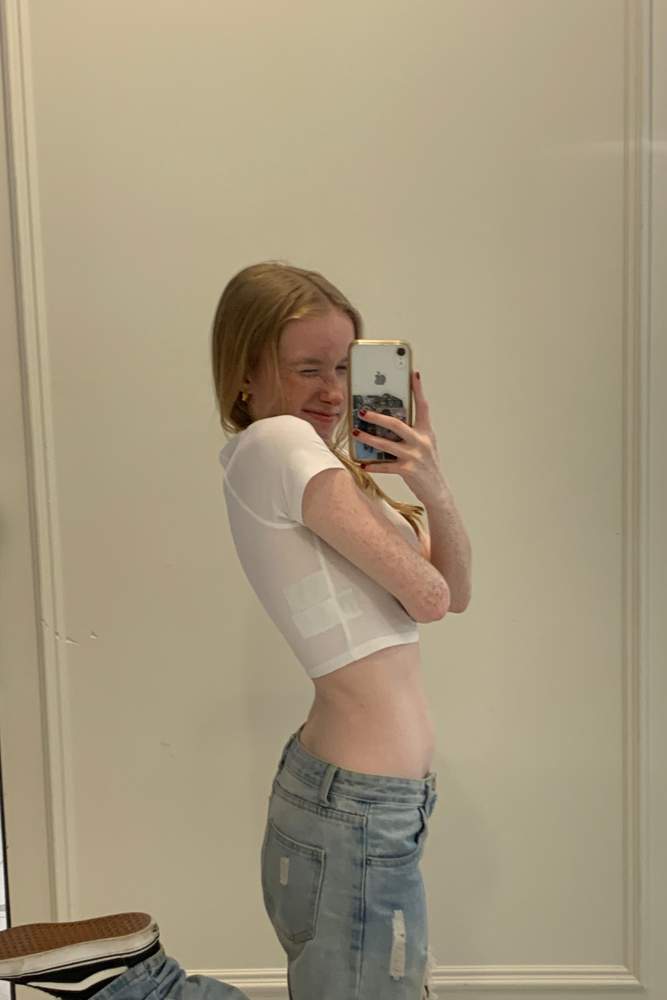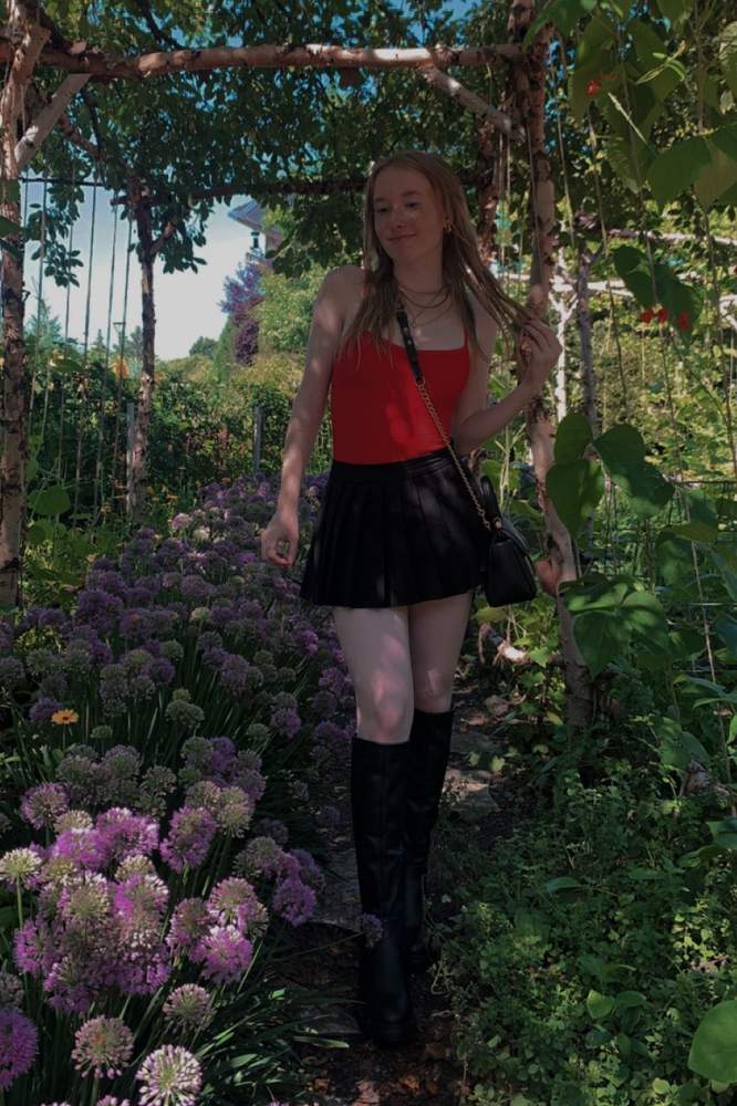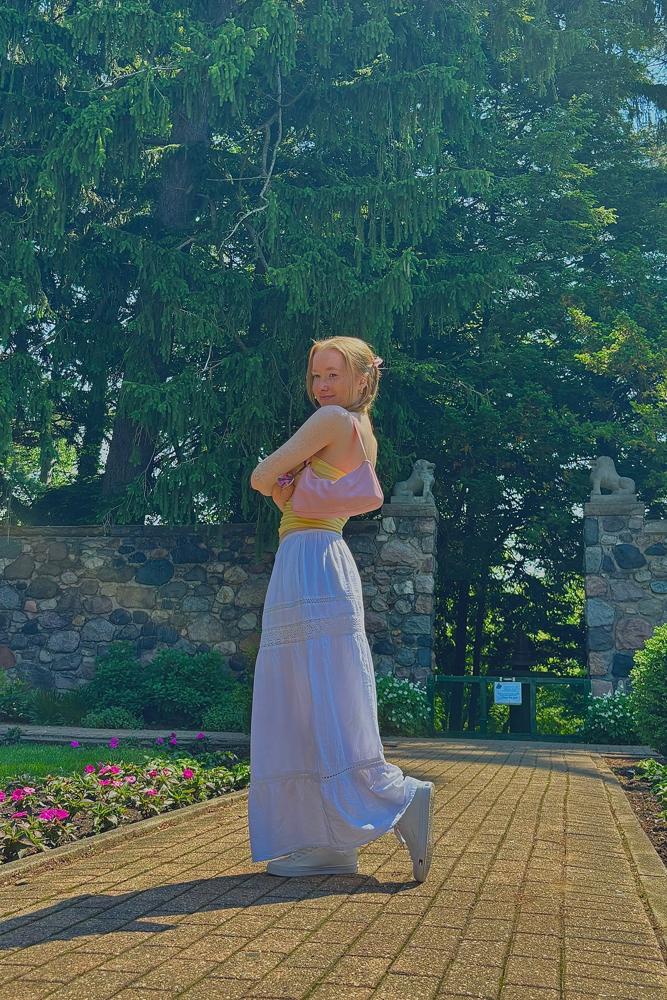 I sized up for the skirt (L) for a longer fit and pinned it to fit :)