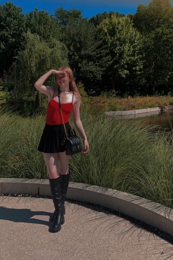 It’s very cute. It’s a bit longer in the back and there are built in shorts since the skirt is really short