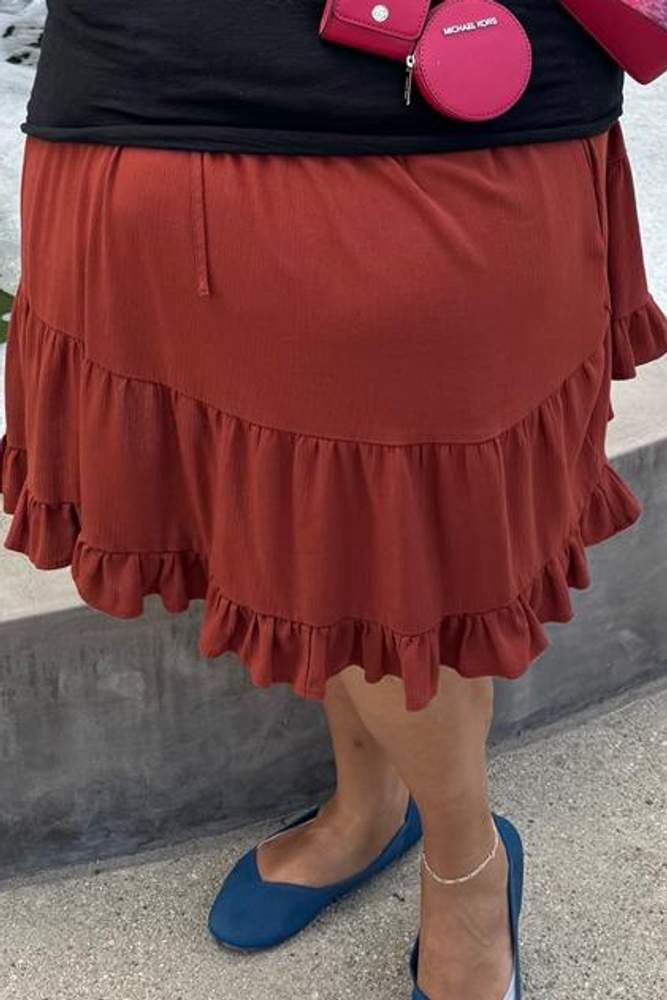 Cute mini skirt paired with a basic top. Equal parts business and fun.