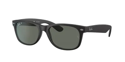RAY-BAN Unisex Sunglasses RB2132 New Wayfarer Classic - Frame color: Rubber Black, Lens color: Green
