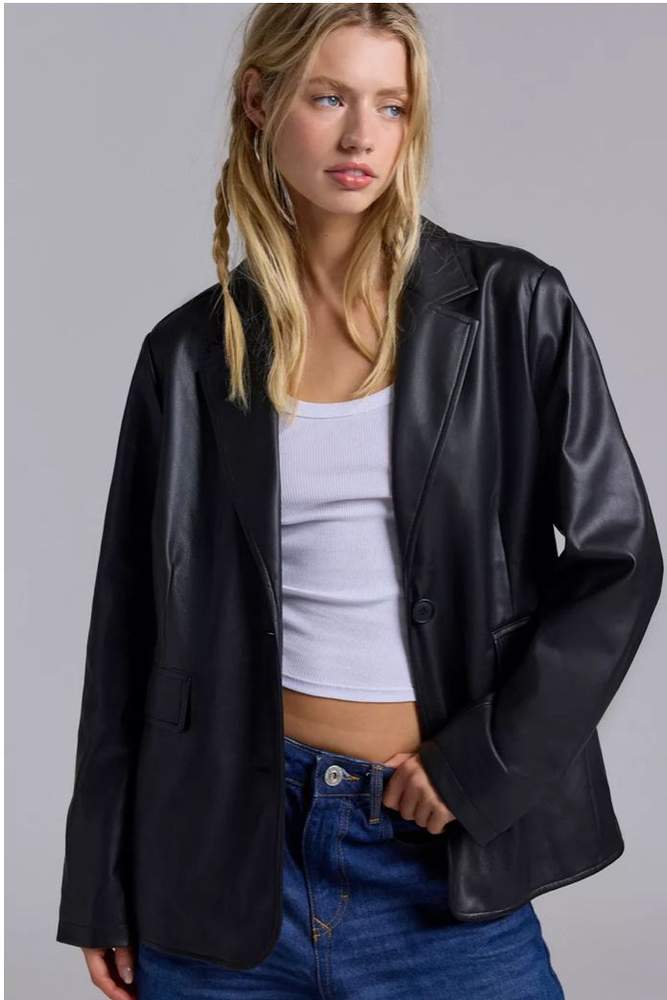 black and white outfit without the leather blazer and with it :)
