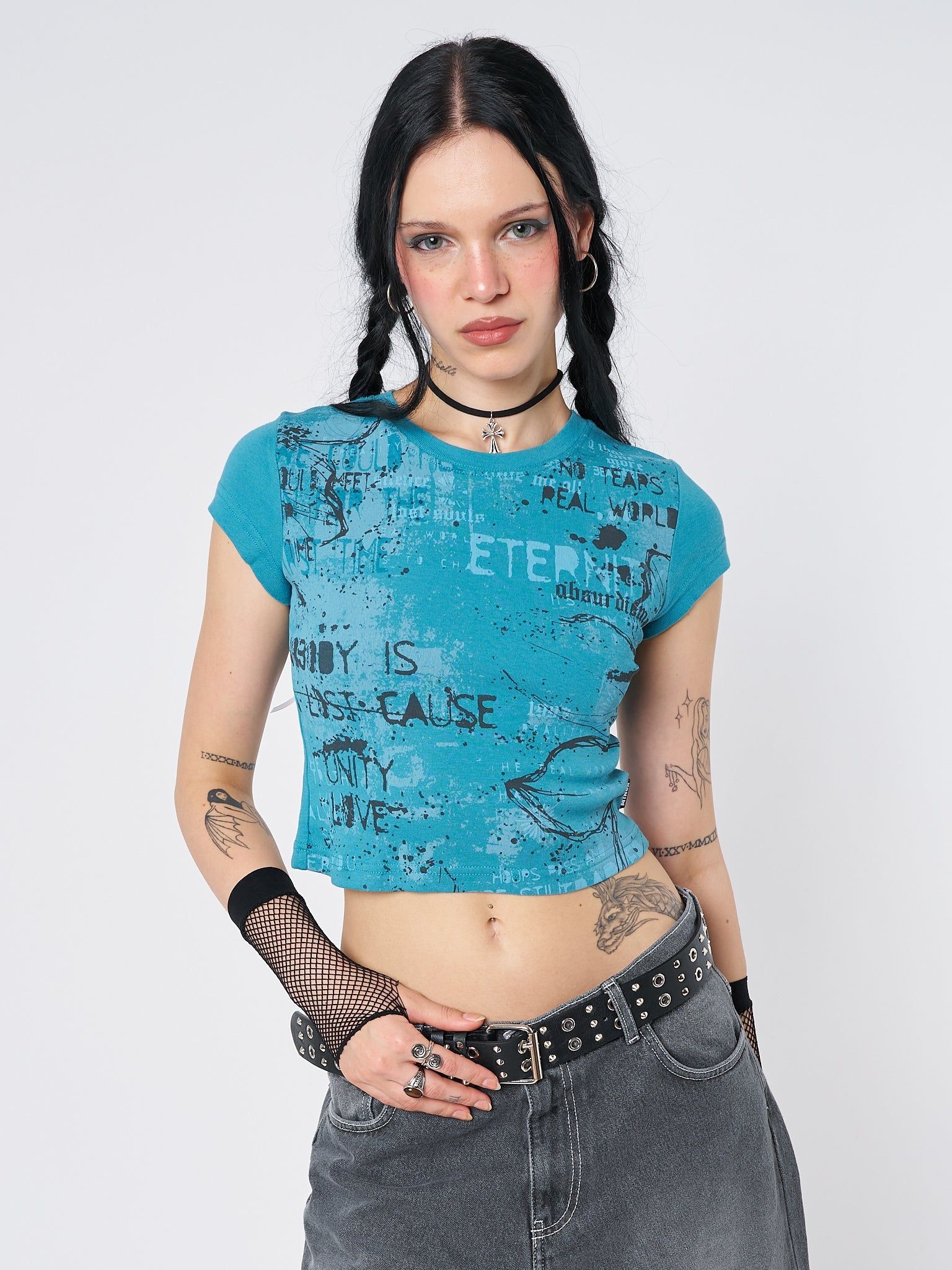 Real World Blue Graphic Baby Tee