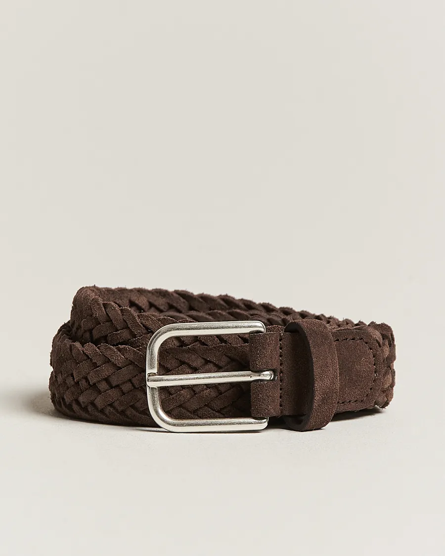 Anderson's Woven Suede Belt 3 cm Dark Brown