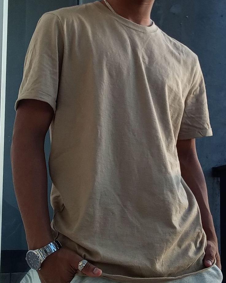 nachoperez1504Camiseta manga corta, unicolor para hombre con costura decorativa en cuello frente.
