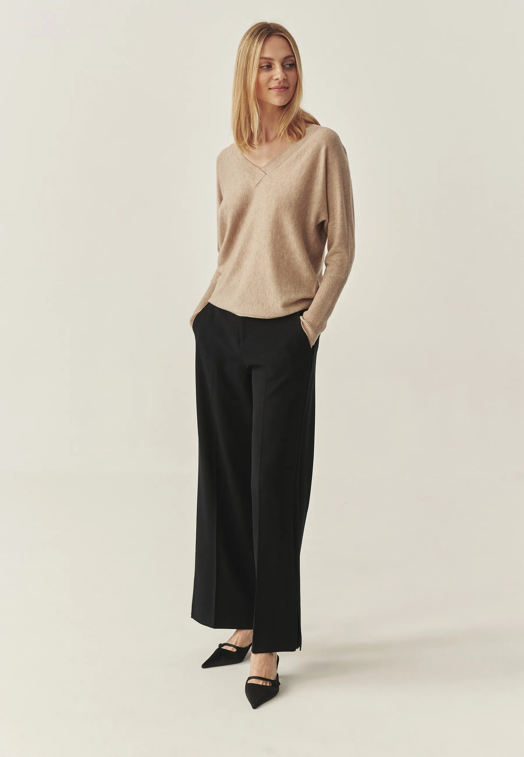 TKANINOWE SPODNIE Z SZEROKĄ NOGAWKĄ - LUZO