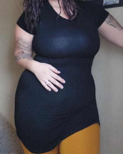 KianaxoMy favorite outfit, which is why my top is so worn out lol! I wear this bodycon dress as a "long shirt" as I feel it flatters my larger body better than regular shirts. I wear this dress every chance I get, and will probably get a new one soon. And the leggings are on sale for $15 right now!!