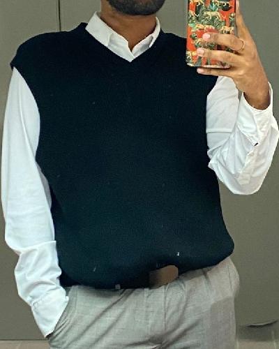 meronchewyModernizing the sweater vest for daily use. Took an oversized sweater vest, and paired it with simple colours. Tucking it in to get that perfect look.