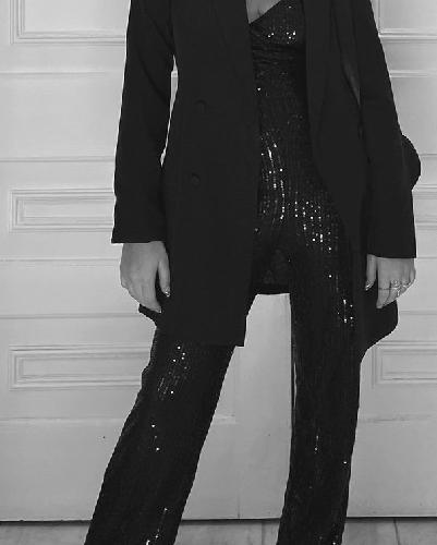 KyraI am so obsessed with this sequence jumpsuit from Petal and Pup. The high-quality, comfortable and beautiful sequin sparkle makes for the perfect jump suit. This outfit is definitely on the classier side paired with a blazer and boots!