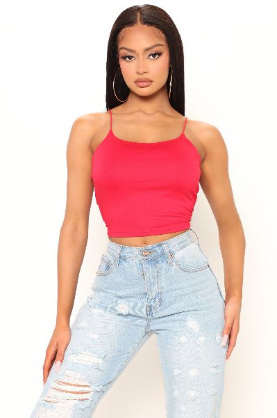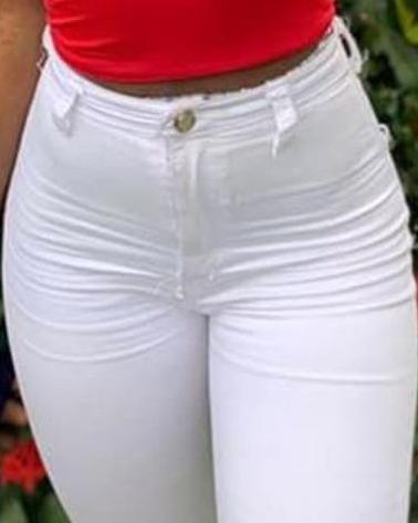 A sun hat, red camisole and a pair of white denim...