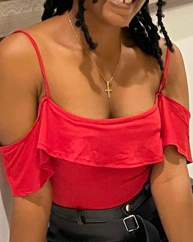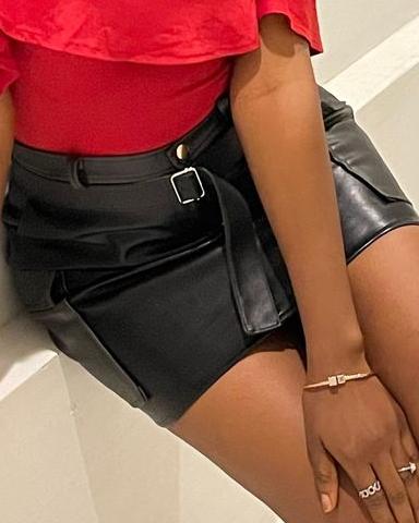 The skirt is super comfy to wear. I love it I love how fitted the cold shoulder bodysuit is too.