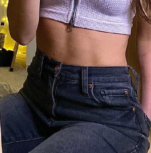 I love this top, the material is super stretchy and the zipper is fully functional! Pairs great with any high rise jeans:)