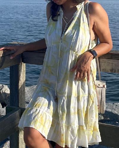 evelinacdjThe dress is size XL, while I usually wear M, but I chose a large size to make sure it was baggy and longer, which was the fit I desired. I would say it fits true to size if you prefer a tighter fit. The rest of the outfit were my regular beach day choices :)