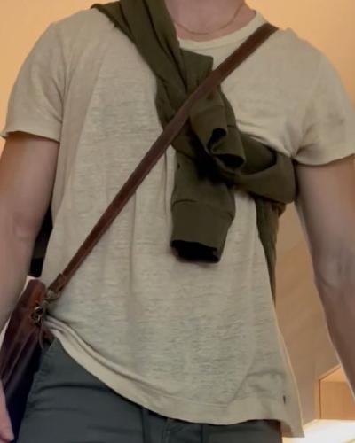 Casual tee and joggers.