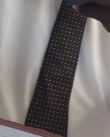 Une tenue chic chemise manche long cravate et sacoche à la mains.