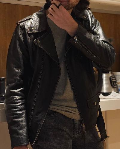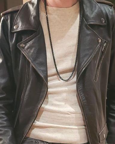Leather jacket style.