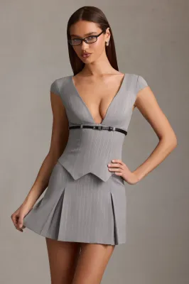 Pinstripe pleated waistcoat, dress Mary Jane heels