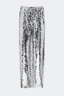 Simon Miller sequin suit — wearing size 0 in both the jacket and pants. The blazer runs oversized and relaxed, and the pants run long with a wide-leg drape (perfect with heels). Statement fit that’s bold, flattering.