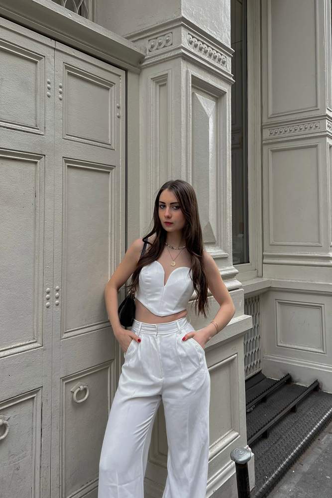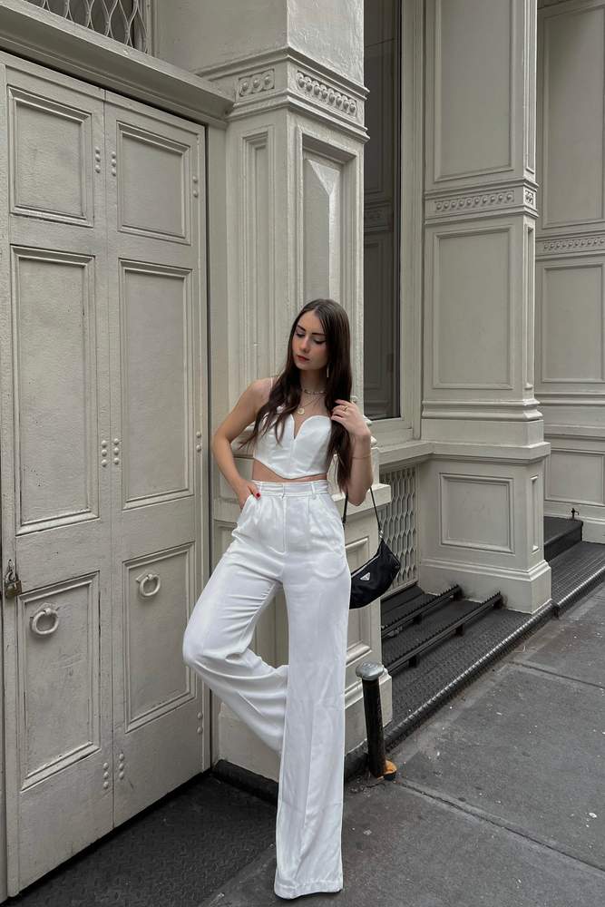Such a beautiful and timeless pair of trousers! The white pair feels very elegant to me, but they also come in vibrant colors like pink and blue which are fun for spring and summer! The more wide leg fit is very flattering and elongating, too.