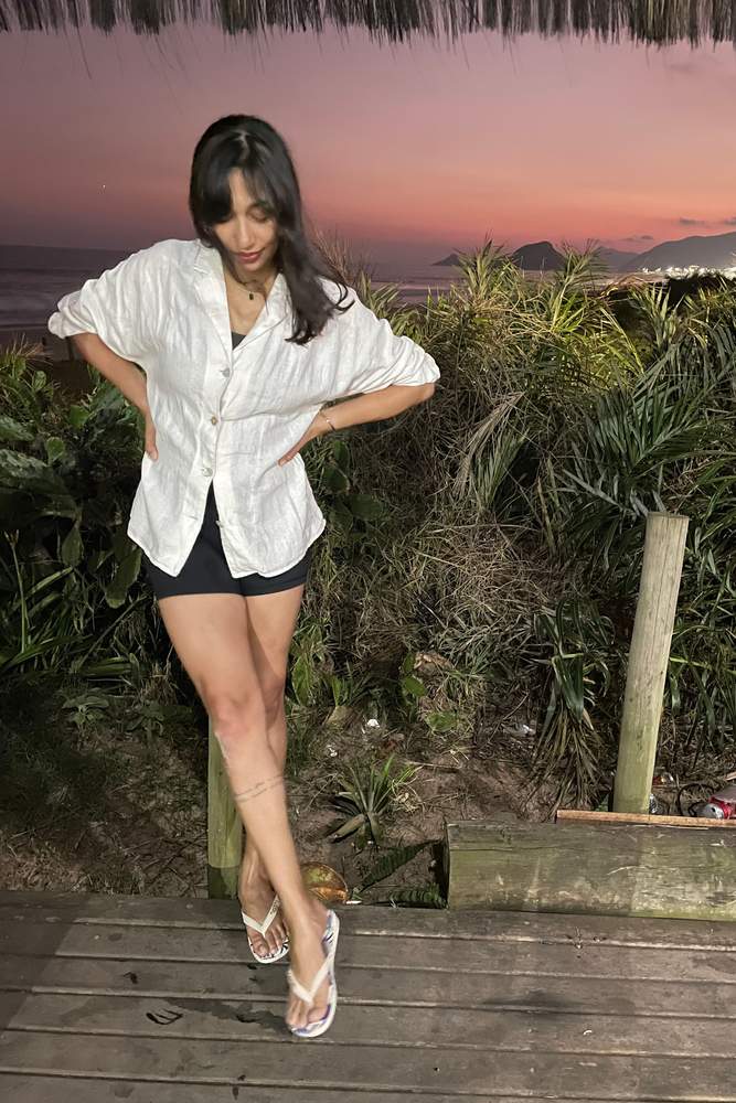 From the brand: The Babaton Essential Linen Oversized Shirt is a linen button-up shirt. This is a long-sleeve button-up shirt with dropped shoulders. It’s made with lightweight linen and LENZING™ ECOVERO™ Viscose — responsibly sourced wood-based fibers produced through a process that reduces impact on forests, biodiversity and water supply.
