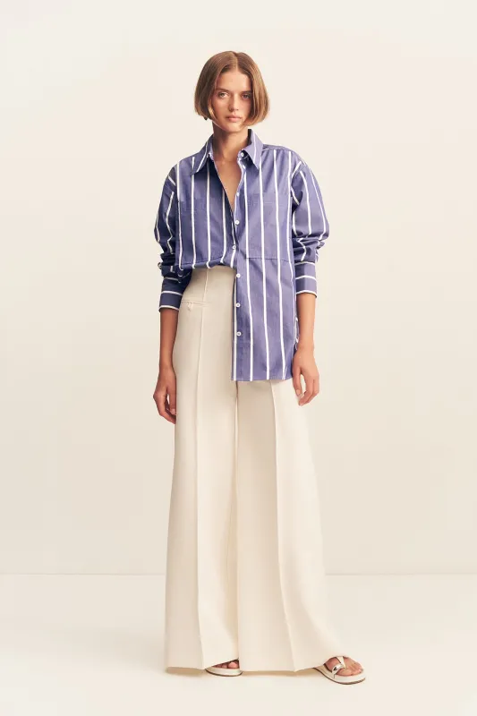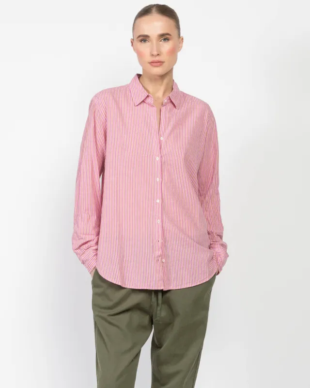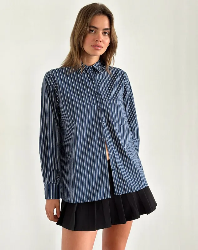 MOTEL X JACQUIE Turner Shirt in Grey and White Stripe with M Embroidery