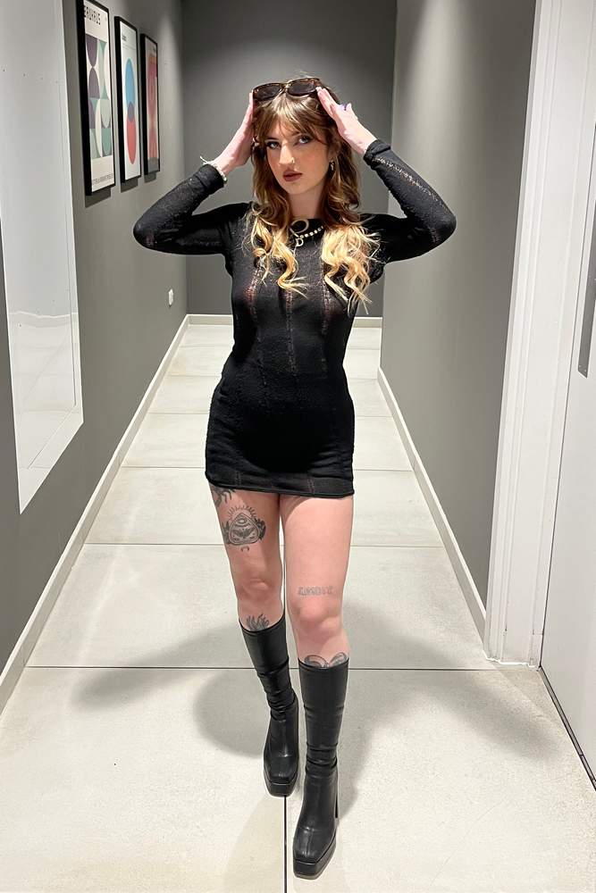 Gorgeous knitted black dress perfect for going out or holidays, a bit see through cause of the fabric so recommend wearing something underneathđź–¤