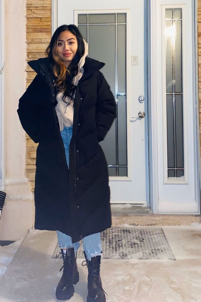 Brave the extreme cold in style with this luxurious puffer coat, designed for temperatures as low as -40°C / -40°F. The chevron-quilted design features a flattering boxy silhouette, high funnel neck for added protection, and is insulated with 700+ fill-power goose down for superior warmth. Crafted from Arctic Cotton, it offers water-repellent and wind-resistant properties, while the sueded exterior provides a soft touch with a refined finish. Perfect for staying warm without sacrificing style.