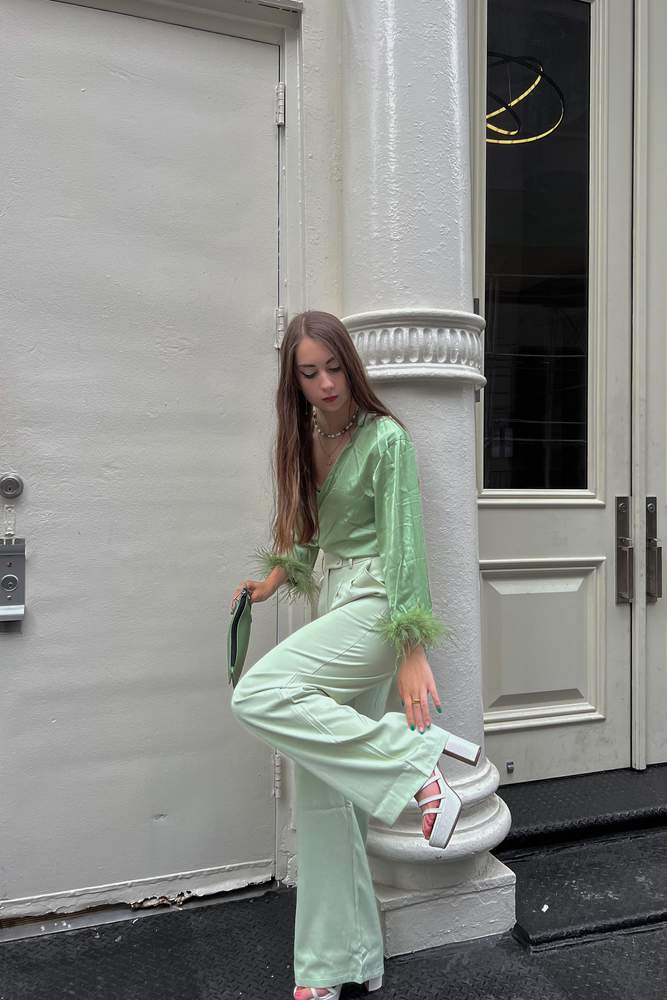 Only wearing the trouser portion of the set, but the fit is immaculate and I love how the top and pants can be styled separately or together. Such a lovely shade of sage green, too.