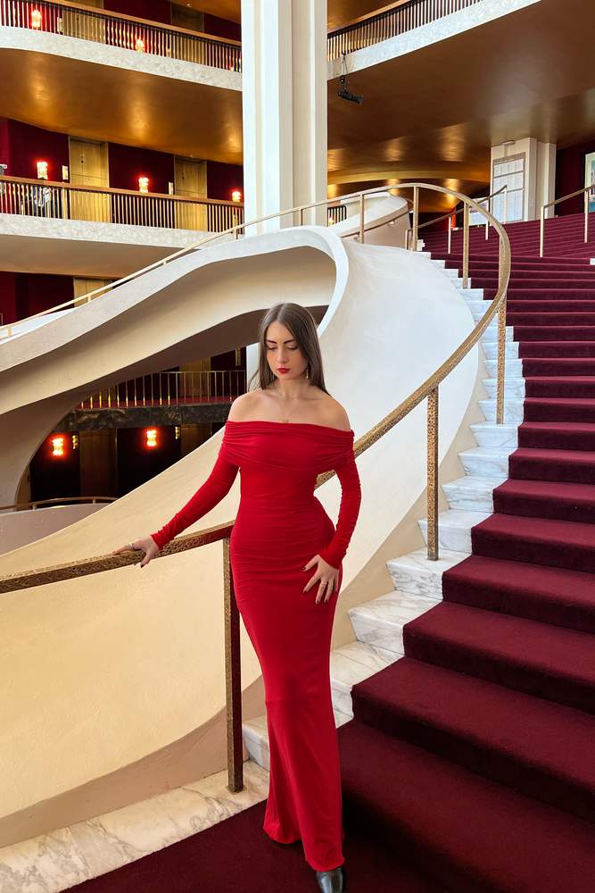 Semi-Sheer Off-Shoulder Mesh Long Sleeve Long Dress