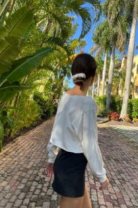 From the brand: Soft oversized cropped long sleeve top with a raw hem.