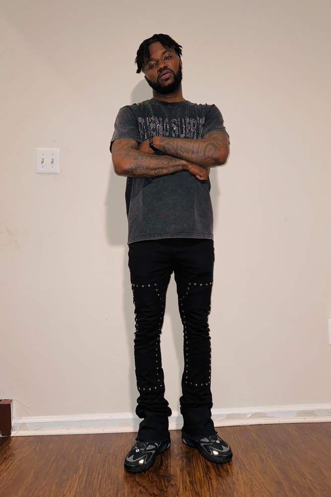 Back Me Up Ripped Stacked Skinny Flared Jeans - Black Wash
