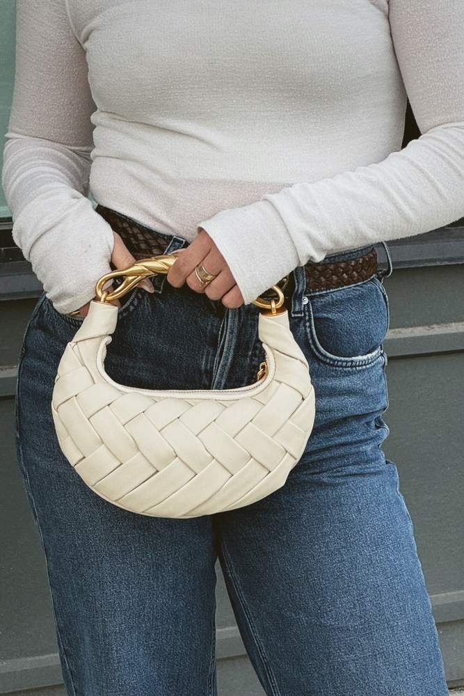 The Orla Weave Handbag in Apricot by JW PEI offers a sophisticated blend of modern design and timeless elegance. Crafted from high-quality materials, its intricate woven pattern adds a touch of luxury to any outfit. The compact yet spacious design allows for essential items to be carried in style. Perfect for both casual and formal occasions, this handbag is a versatile addition to any wardrobe, reflecting contemporary aesthetics and functional charm.